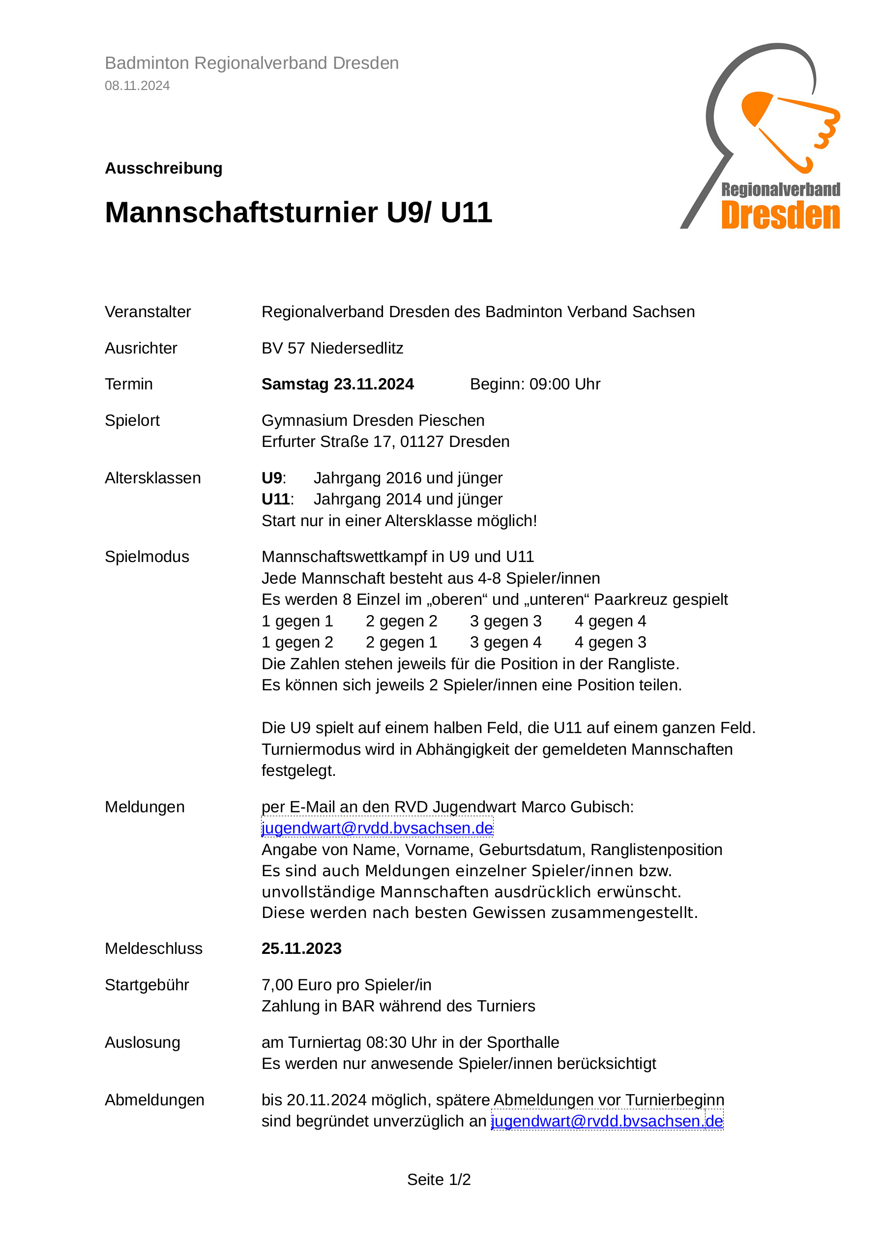 für die 13. DEM U13 und 73. DEM U19 2024, welche vom 06.12.24 bis zum 08.12.24 in Gera stattfindet, werden dringend noch Schiedsrichterinnen und Schiedsrichter gesucht.